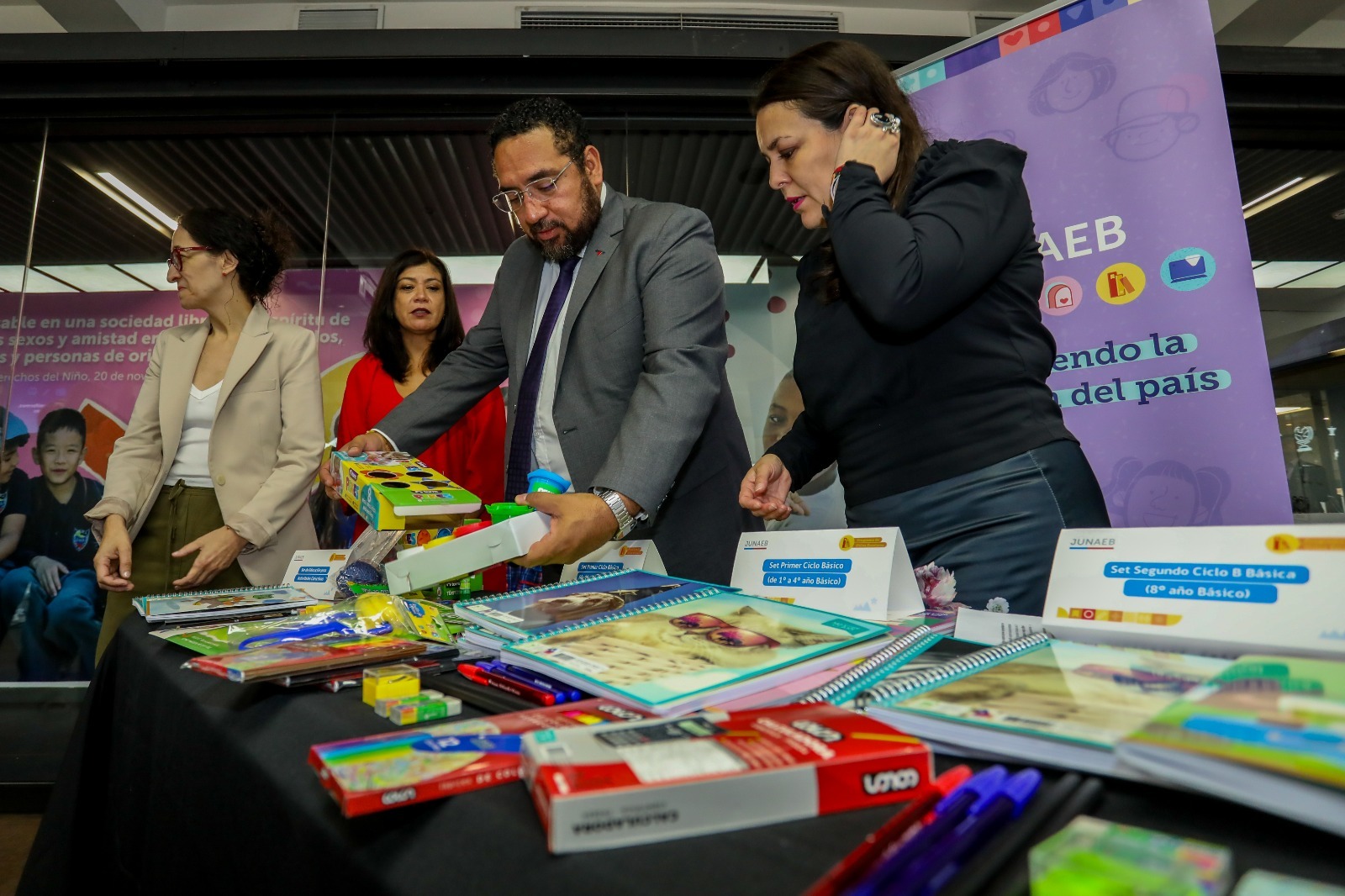 El ministro de Educación, Nicolás Cataldo Astorga; la superintendenta de Educación, Loreto Orellana Zarricueta; la directora nacional de Junaeb, Camila Rubio Araya; y la directora nacional (s) del Sernac, Carolina González Venegas, entregaron recomendaciones y recordaron la normativa vigente respecto a útiles, textos y uniformes escolares y parvularios, en el marco del inicio del año académico 2026. Las autoridades subrayaron que el derecho a la educación de niñas, niños y adolescentes no puede verse afectado por la falta de materiales y que ningún establecimiento puede exigir artículos de aseo u oficina en las listas de útiles, ni imponer marcas específicas